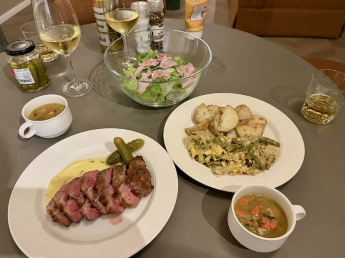初日にスーパーで買ったものはこれ、ここにラム肉やサーモン、パンや飲み物を追加で買ったものを合わせて自炊はスーパーでの食材購入で合計ざっと25,000円夕食だけでなくランチにも持って行ったりしたので、結構いい買い物だったと思う。ここで力貯めて、外食ディナーで爆発させたって感じ。