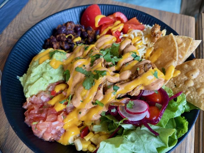 最初に選んだのが「Funky Bhangra」というお店のラムバーガー(約5000円)と、野菜が食べたかったので「SUPER BURRITO」でお米入りのブリトーボウル(約4000円)も注文した。ビールは一杯だいたい2000円。