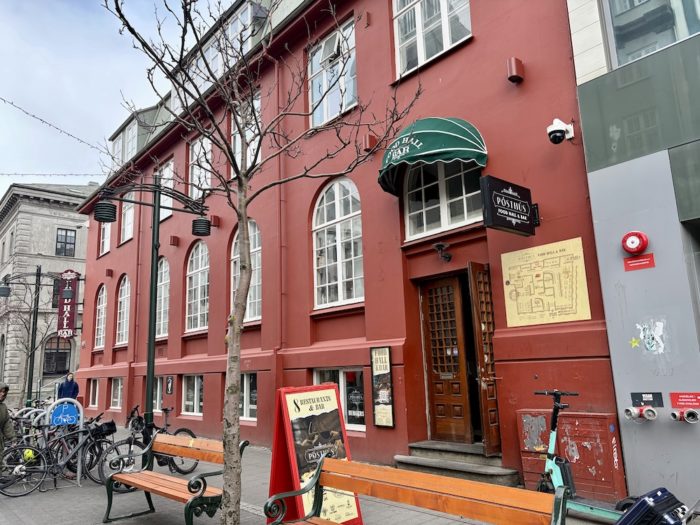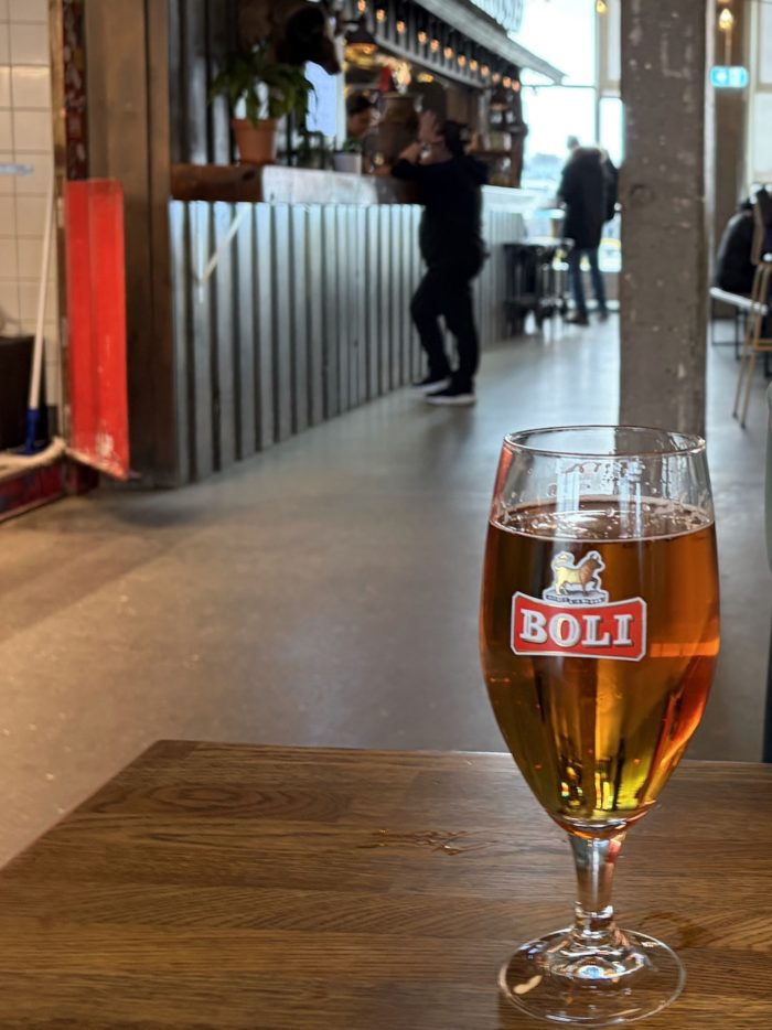 レイキャビク到着日、チェックインを終えて最初に向かったのが「Pósthús Food Hall(ポストヒュース・フードホール)」だ。旧郵便局の建物を改装した市内中心部のフードホールで、複数の飲食店が軒を連ねる。2階で、中が見えなかったことにちょっと緊張したけども、中に入ってみると、天井が高く、煉瓦調の内装が落ち着いた雰囲気なのに、いろんなお店が入っていて気軽な感じ。かしこまったレストランではなく、ちょっとカジュアルな感じがいい。ひとまず飛行機の長旅の疲れをほぐしながらゆっくりビールを飲むことにした。