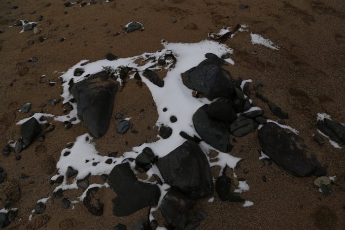 アイスランドの浜が黒いのも驚きの1つ。砂や小石が黒い。黒い石ばっかり。これらの原料が玄武岩質の溶岩だからで、その岩が砕けて黒い砂になる。(ちなみに熱帯の白い砂浜が珊瑚や貝殻から生まれるのも同じ原理)砂浜の色はその土地の地質をそのまま映していると言える。