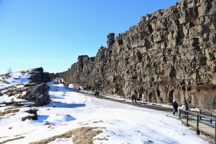 まず向かったのはシンクヴェトリル国立公園。ここはユーラシアプレートと北米プレートが実際に離れていくのを地表で観察できる、世界でも稀有な場所だ。大地の割れ目を歩いていると、自分が地球という惑星の表面を歩いているのだとリアルに感じる。