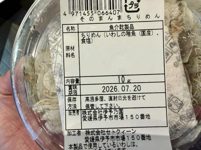 このセットの凄さは、とにかく「素材感」。保存料を極力使わず、素材そのものの味で勝負している点に圧倒的で絶対的なこだわりを感じます。だってね、商品の裏についてるこの素材が記載されているシールですよ。「ちりめん」以上。すごい!素材(ちりめん)の説明に「いわしの稚魚」って書いてなかったらもっと短いんだから。とにかく素材しか入ってないってことがわかる。これは妙なパッケージよりも、このシールを箱の一番見える一番上に貼っておくだけでいいと思う。